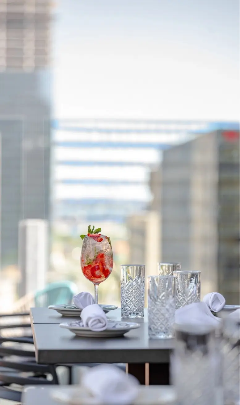 Treat yourself to a break above it all on Terrasse R. Enjoy summer classics with an Asian twist and soak in the vibrant energy of the Quartier des Spectacles.